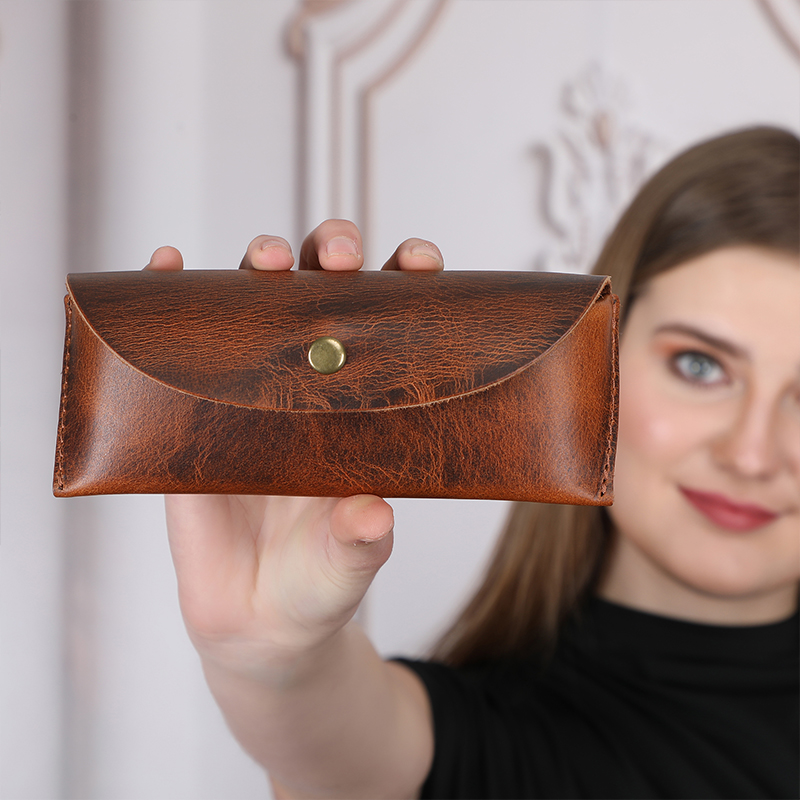 • This leather sunglasses cover is crafted from genuine leather with rustic look as well as extremely durable and perfect for sunglasses or eye glasses. As the leather is naturally distressed & tanned, there may be some marks – but this is what gives the leather its vintage look.