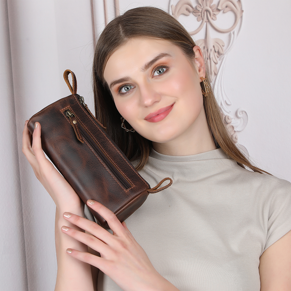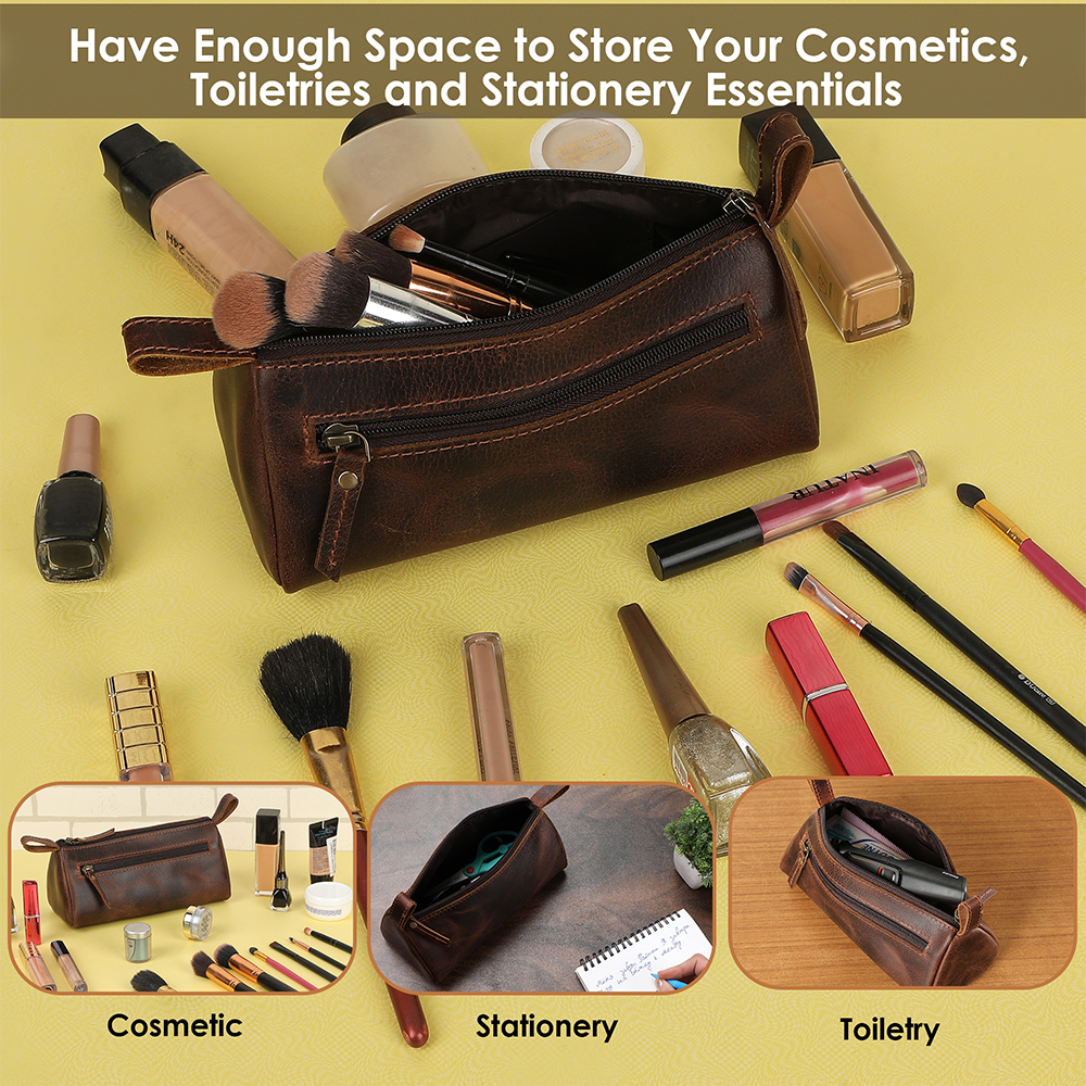 - BEAUTIFULLY MADE TO LAST A LIFETIME: Store your favorite makeup pieces in style! Our gorgeous handcrafted make up bag made from 100% genuine, soft buffalo leather. This luxuriously stylish carrier makes a great gift for a beauty lover or as a treat for yourself!